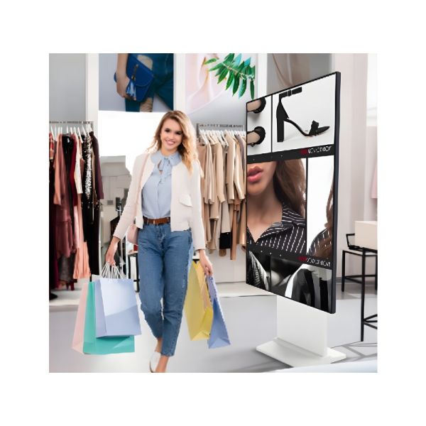 O design elegante em preto não só se adapta a qualquer espaço de trabalho, mas também complementa a modernidade da tecnologia de sinalização. É ideal para uso em lojas, feiras e eventos onde a apresentação de informações visuais é crucial.