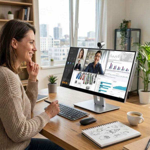 Chega de monitores de escritório tradicionais! O modelo Jupiter Pana 34 traz uma lufada de ar fresco aos seus postos de trabalho individuais, melhorando a interação e a colaboração entre as equipas.