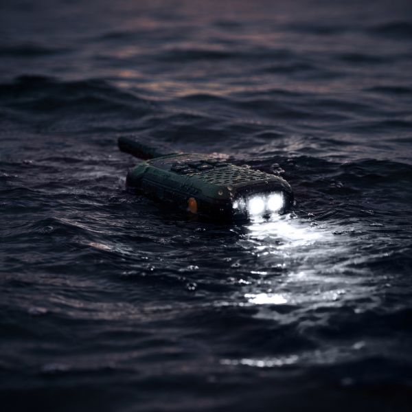 O Dynascan F-15 tem uma lanterna LED incorporada e um flash LED que se ativa automaticamente em contacto com a água. É muito útil para profissionais que trabalham à noite ou para excursões noturnas. Tem também um botão de emergência claramente visível no esquerdo, que em caso de alerta, ativa uma chamada em mãos livres e um aviso sonoro para informar o seu grupo de que precisa de ajuda.