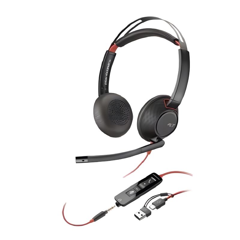 O design ergonómico da série Blackwire 5200 é confortável de usar e a conetividade fácil de usar permite-lhe trabalhar numa variedade de dispositivos. Eles oferecem opções de conetividade aprimoradas para seus dispositivos: cabo USB-C com adaptador USB-A para PC e conetor de 3,5 mm para conectar a um celular ou tablet Obtenha um som excelente e esqueça as inevitáveis distrações no local de trabalho com um fone de ouvido repleto de recursos: almofadas macias e adaptáveis oferecem cancelamento passivo de ruído e um microfone sintonizado com precisão mascara conversas próximas.