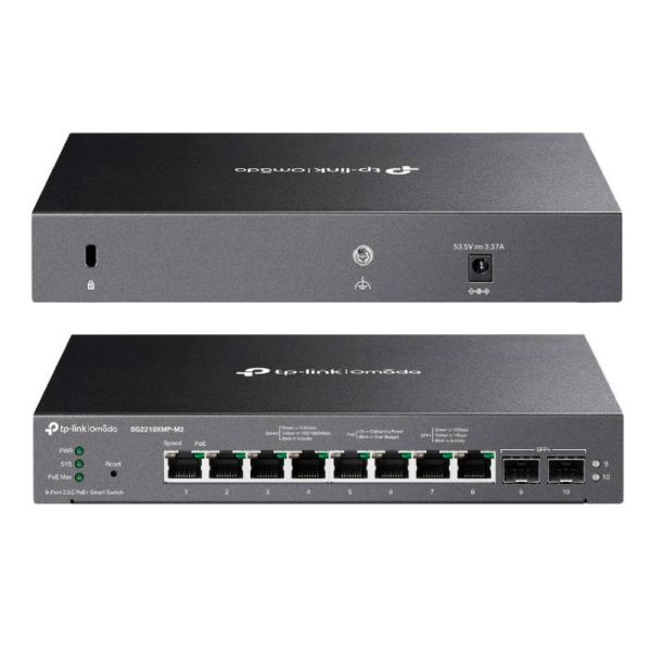 O switch SG2210XMP-M2, com as suas 8 portas 2.5G PoE+, permite-lhe ligar pontos de acesso WiFi 6/7, câmaras IP de alta definição ou estações de trabalho multigigabit sem compromisso. Os 2 slots SFP+ 10G fornecem uplink ultrarrápido para a rede principal ou servidores.